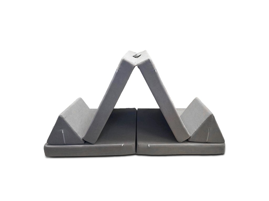 The dimensions of the Bunkr are 180 x 90 cm, while in the folded state, it measures 90 x 90 cm. The mattress height is 13 cm, ensuring not only excellent structural stability but also safety for little adventurers. The triangles are 50 cm long and 31 cm high.